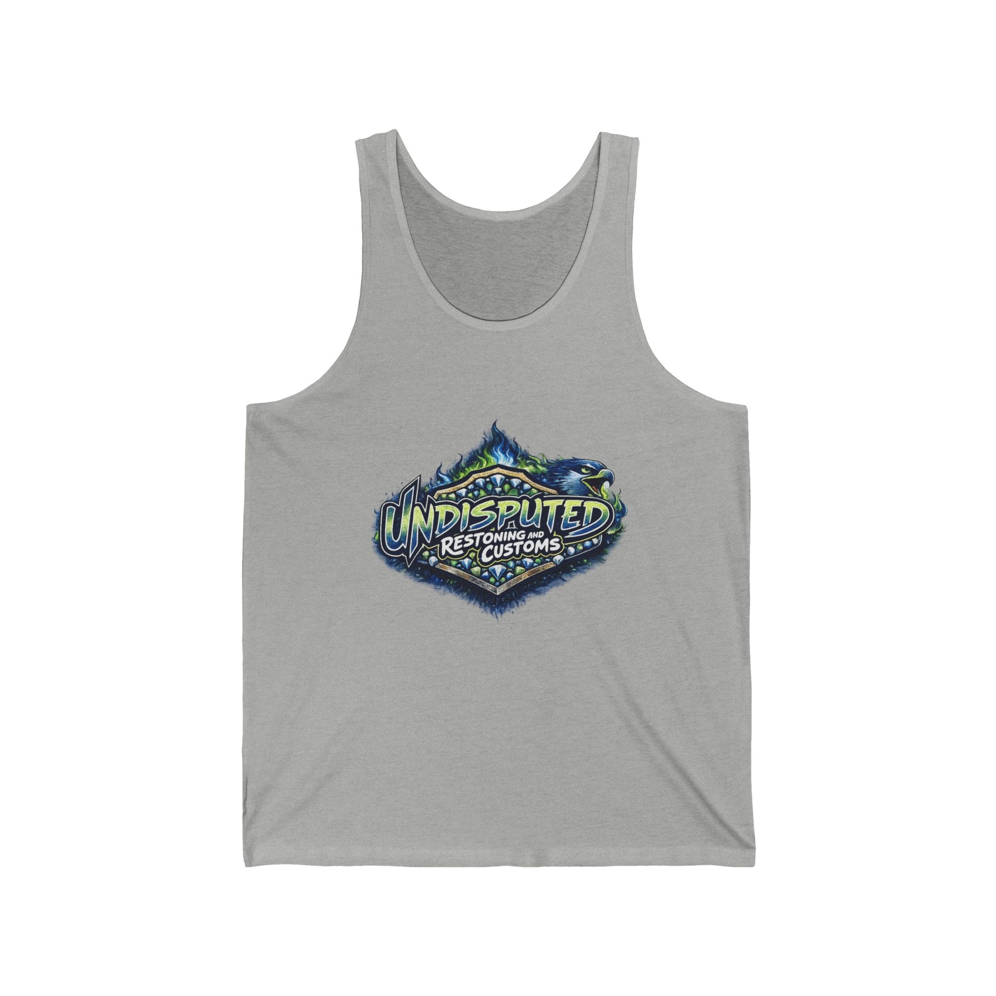 This lightweight tank carries a bold, outdoorsy logo across the chest — a worn-paint badge with mountain peaks and rocky texture that reads “UNDISPUTED” above smaller text. It feels like a warm morning on a trail: uncomplicated, breathable, and built to move with you. The retail fit and soft Airlume cotton give it a clean silhouette that layers well under jackets or stands alone during hot-weather adventures. The tear-away label keeps the neck comfortable, and the side seams help the shape hold through washes. Wear it when you’re heading out for a hike, working on a weekend project, or lounging at a lakeside fire. The graphic’s rugged, handcrafted vibe pairs with camp breakfasts, roadside diners, and casual meetups with fellow outdoor lovers.